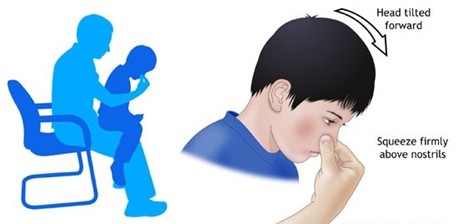 Intuitivamente temos a tendência de inclinar a cabeça para trás, porém, quando fazemos isso, o sangramento é direcionado para a garganta e podem ocorrer engasgos e ingesta desse volume. A posição correta após fazer a compressão das narinas com os dedos é inclinar a cabeça para a frente para que isso não ocorra. Pode-se chupar gelo ou algo gelado a fim de esfriar a cavidade oral que consequentemente ajuda na constrição dos vasos sanguíneos do nariz. Normalmente após alguns minutos fazendo essas medidas há uma cessação do sangramento.